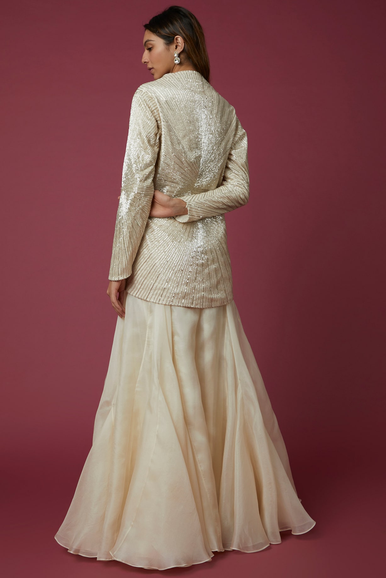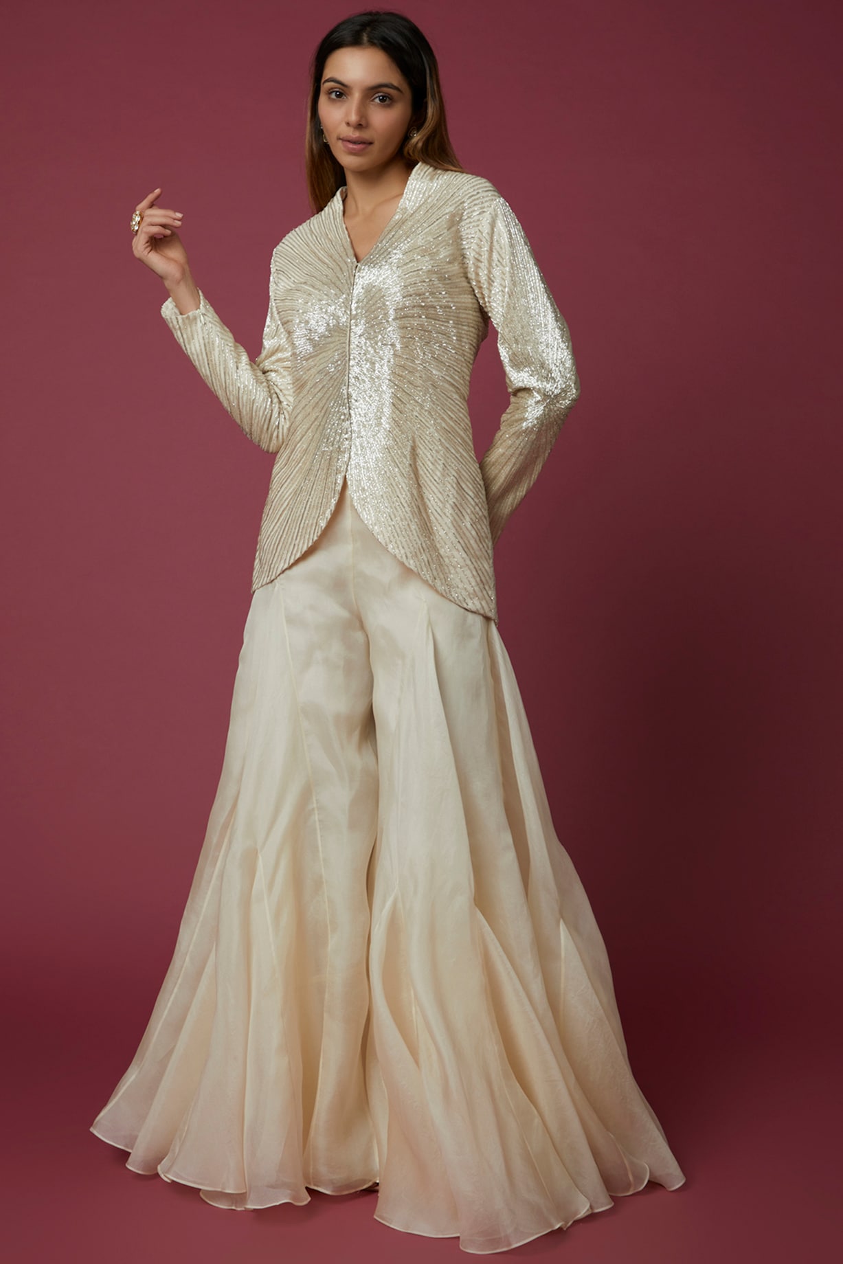 Red Jacket Set Pure Chiffon Embroidered Jacket Set by COUTURE BY ...