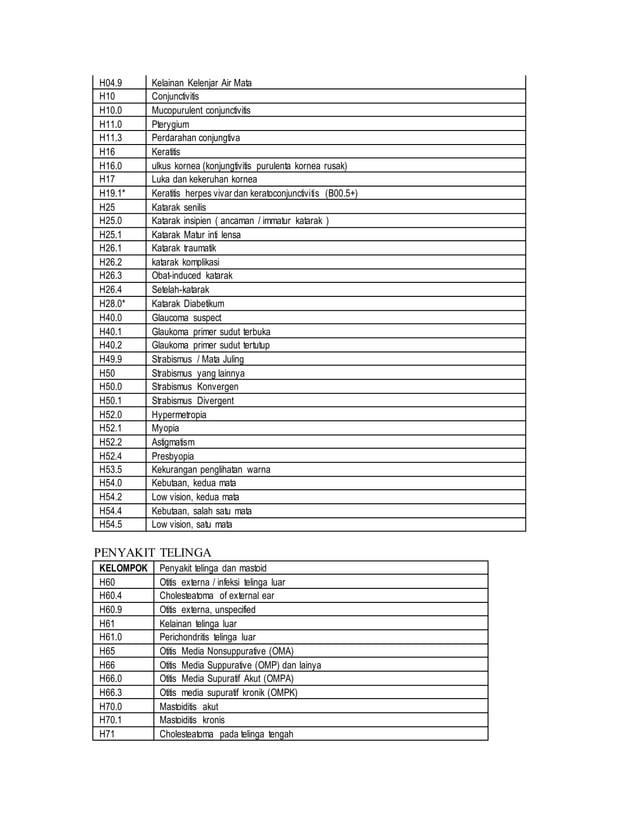 Kumpulan kode icd10 yang paling sering di temukan | PDF