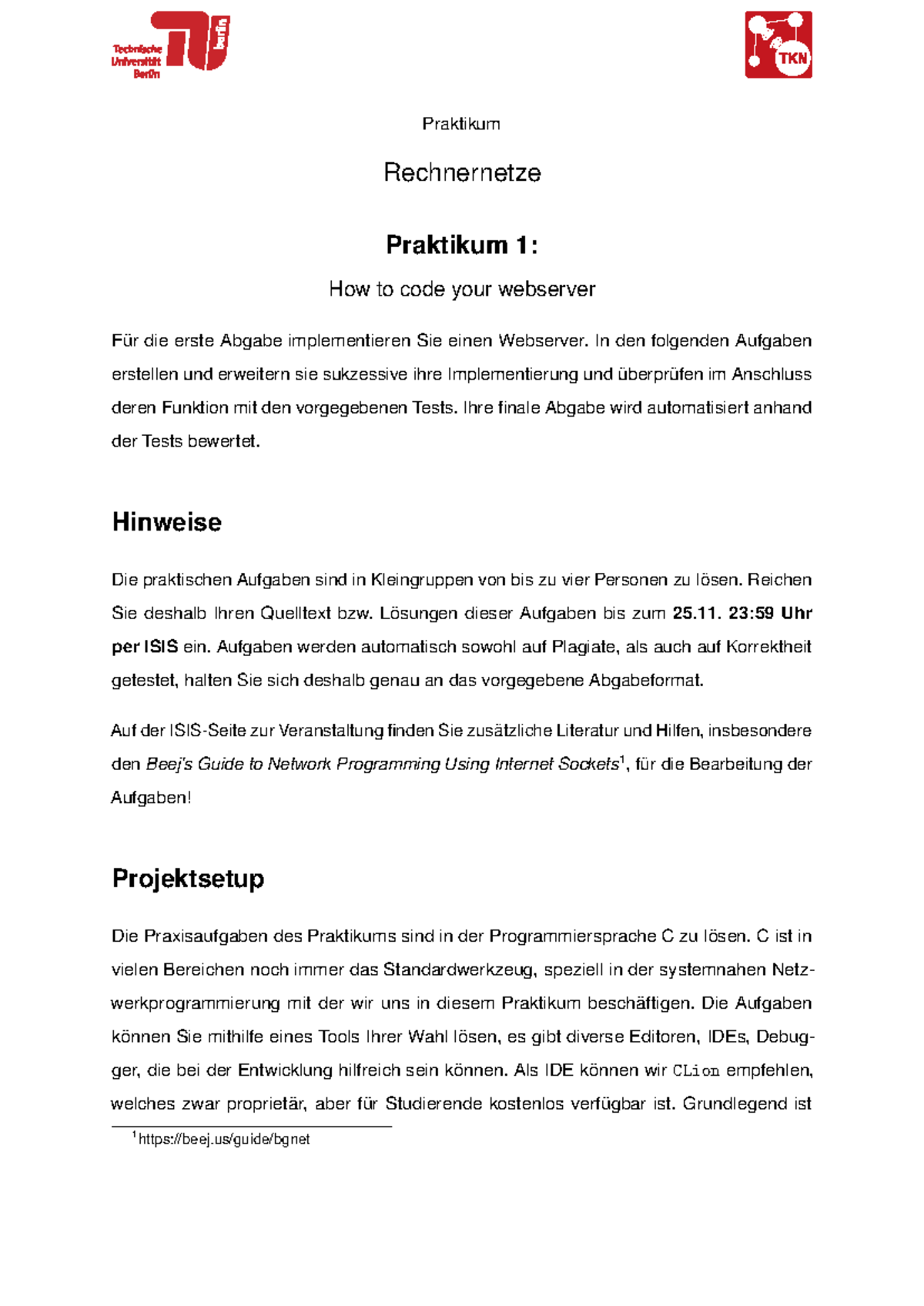 Praxis 1 - Webserver Implementierung im Wintersemester 22-23 - Studocu