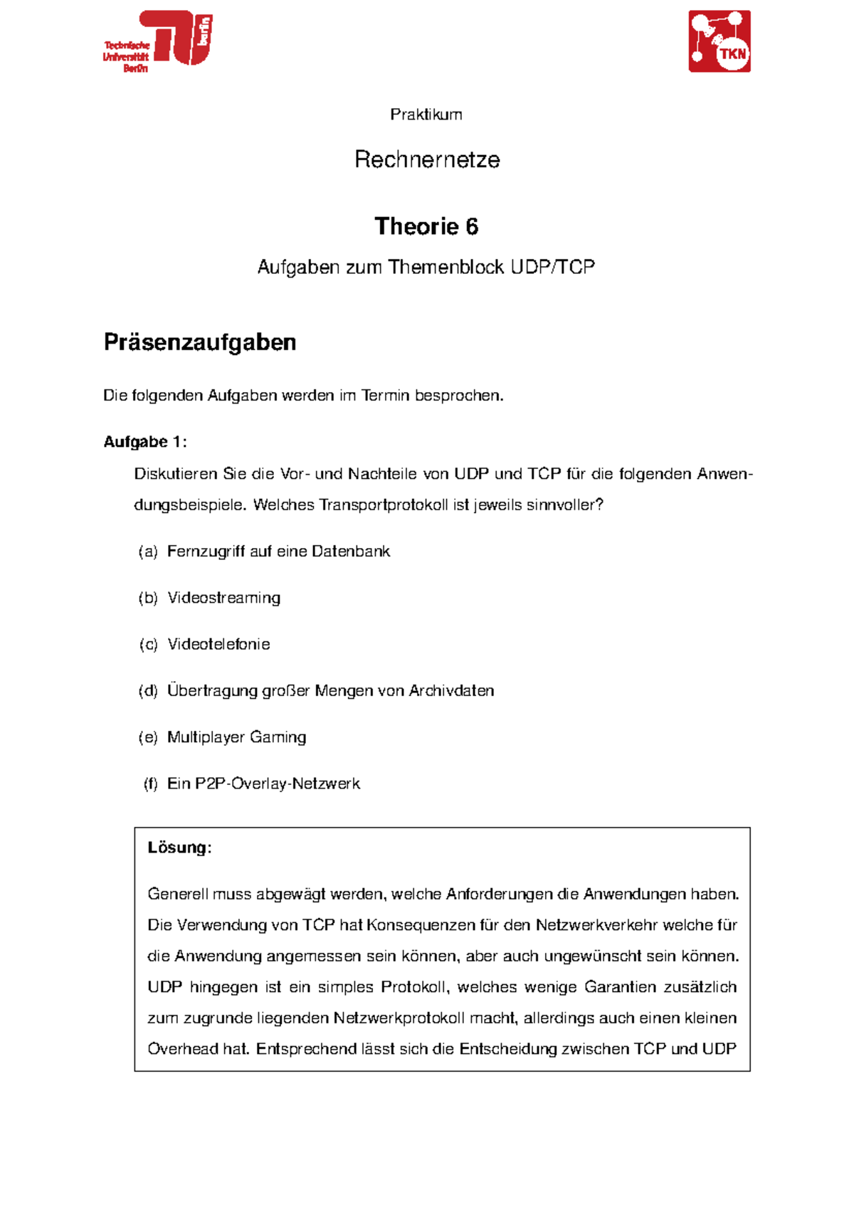 Theorie 6 - UDP/TCP Aufgaben und Lösungen - Studocu