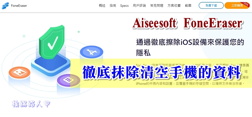 限時免費 Aiseesoft FoneEraser 徹底抹除清空 iPhone 手機中的資料 - 挨踢路人甲