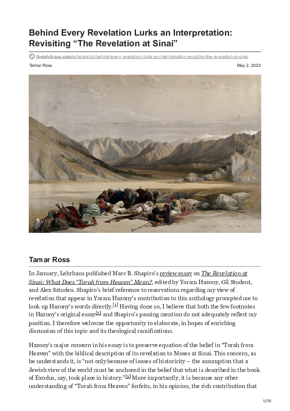 (PDF) Tamar Ross, “Behind Every Revelation Lurks an Interpretation ...