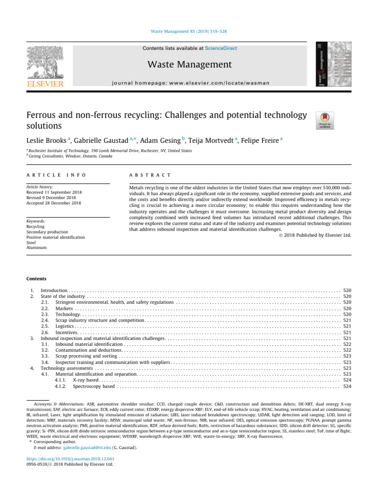 Ferrous and Non-Ferrous Recycling - Challenges and Potential Technology ...