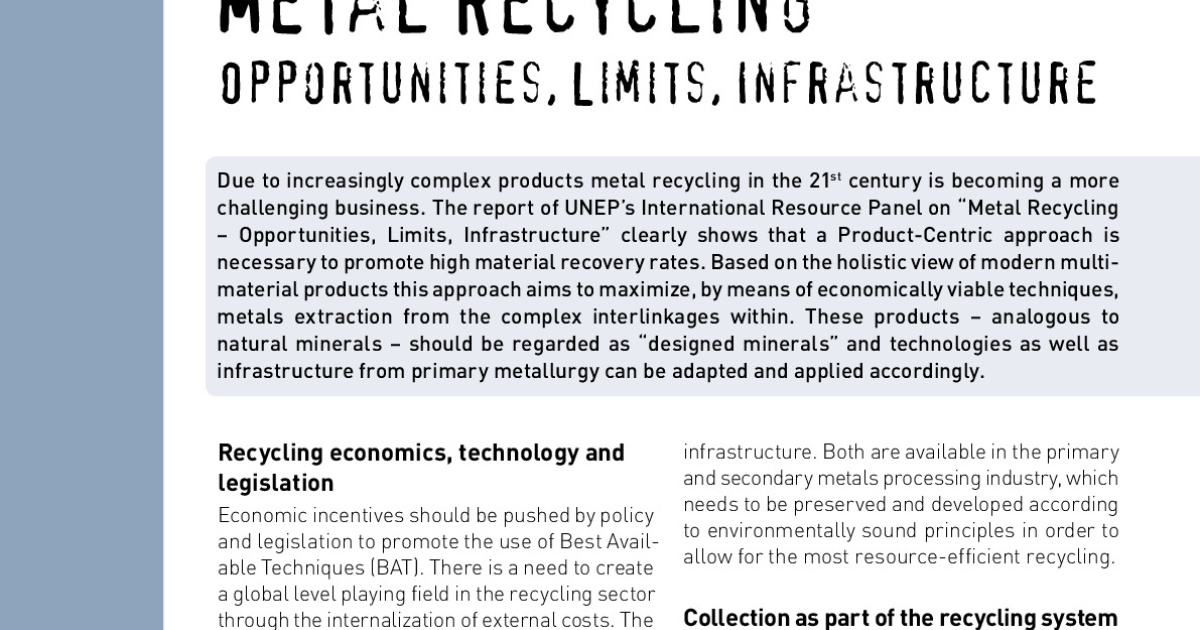 Metal Recycling (Factsheet English) | Resource Panel