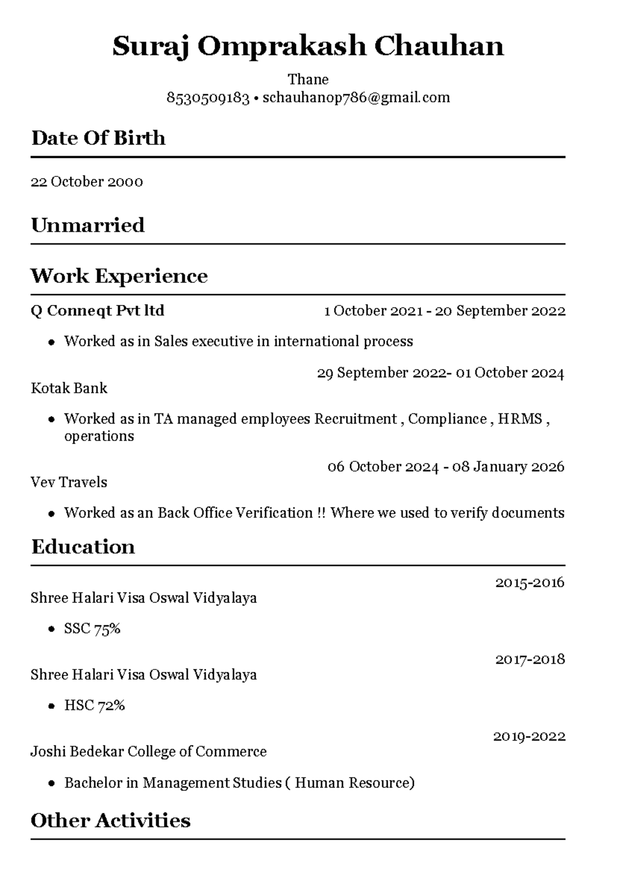 Resume of Suraj Omprakash Chauhan - BMS Graduate - Studocu