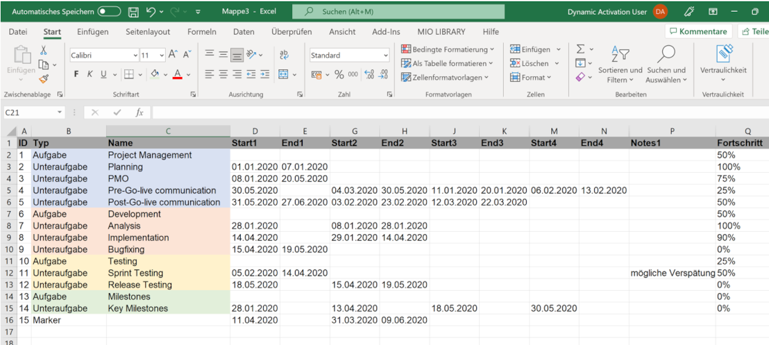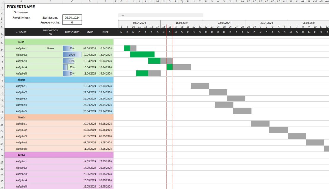 Gantt Chart Excel Vorlage kostenlos downloaden