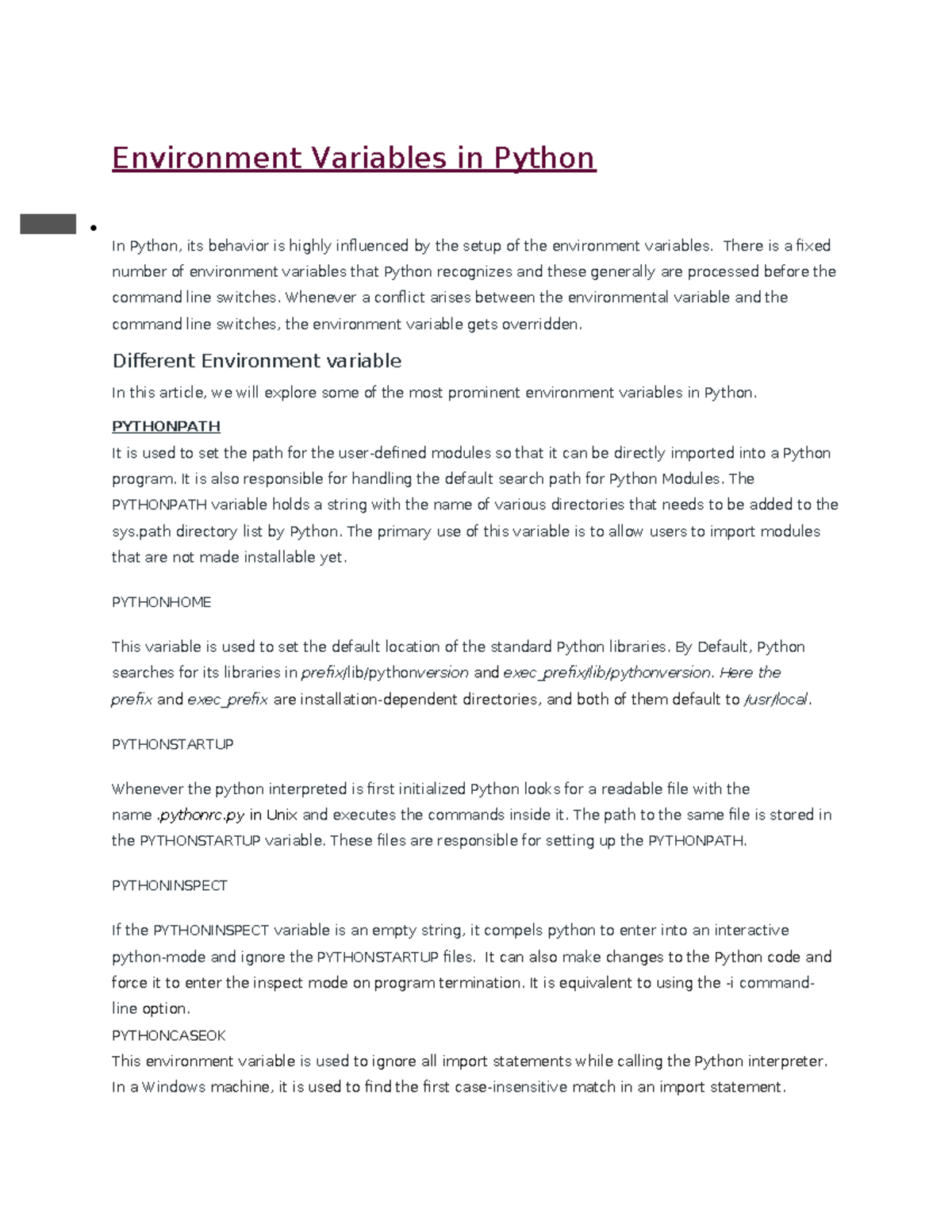 Python BCA 3rd - Environment Variables in Python ####### In Python, its ...