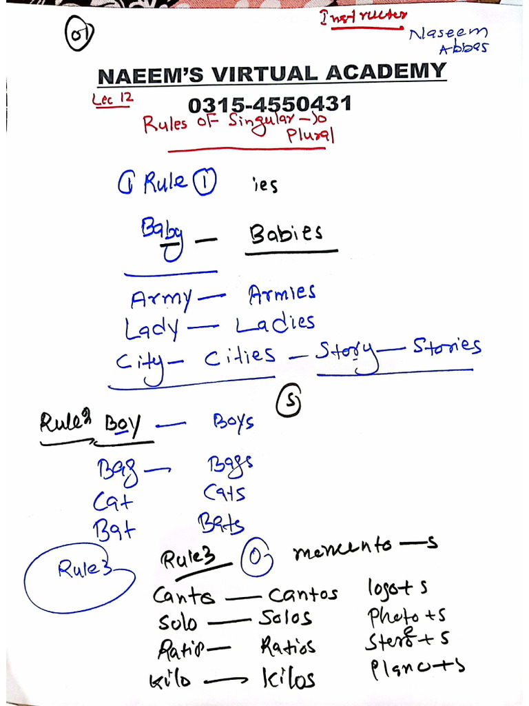 Lec 12 Singular To Plural Rules | PDF