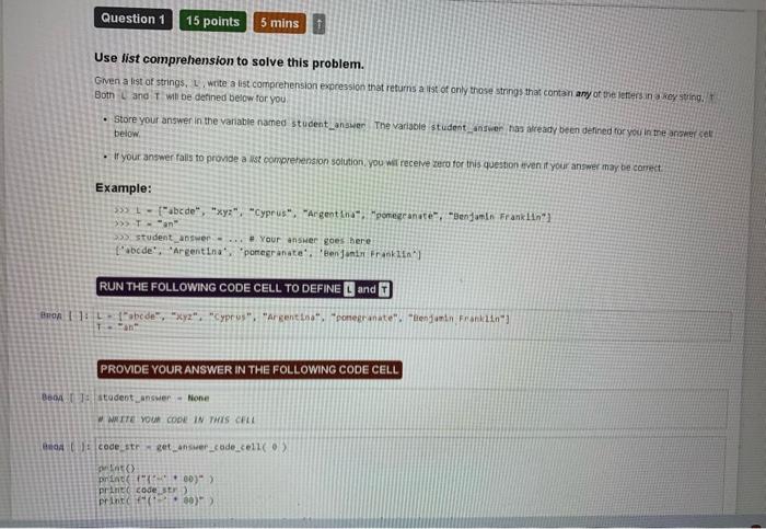 Solved Problem 5. List Comprehensions Write your answers in | Chegg.com