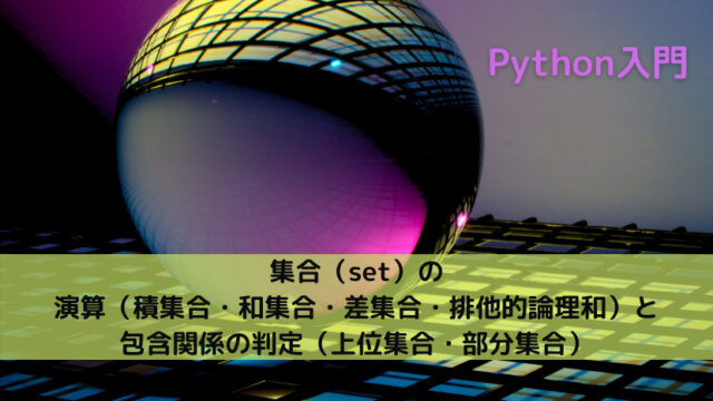 【Python】集合(set)の演算(積集合・和集合・差集合・排他的論理和)と包含関係の判定(上位集合・部分集合)