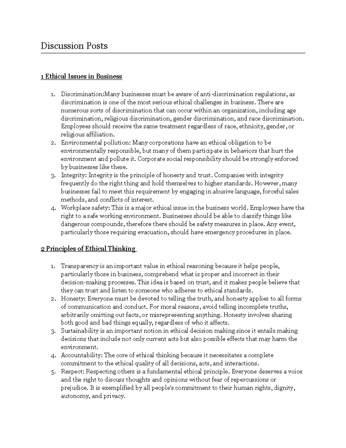 BUSI 1401 - Discussion Posts - Discussion Posts 1 Ethical Issues in ...
