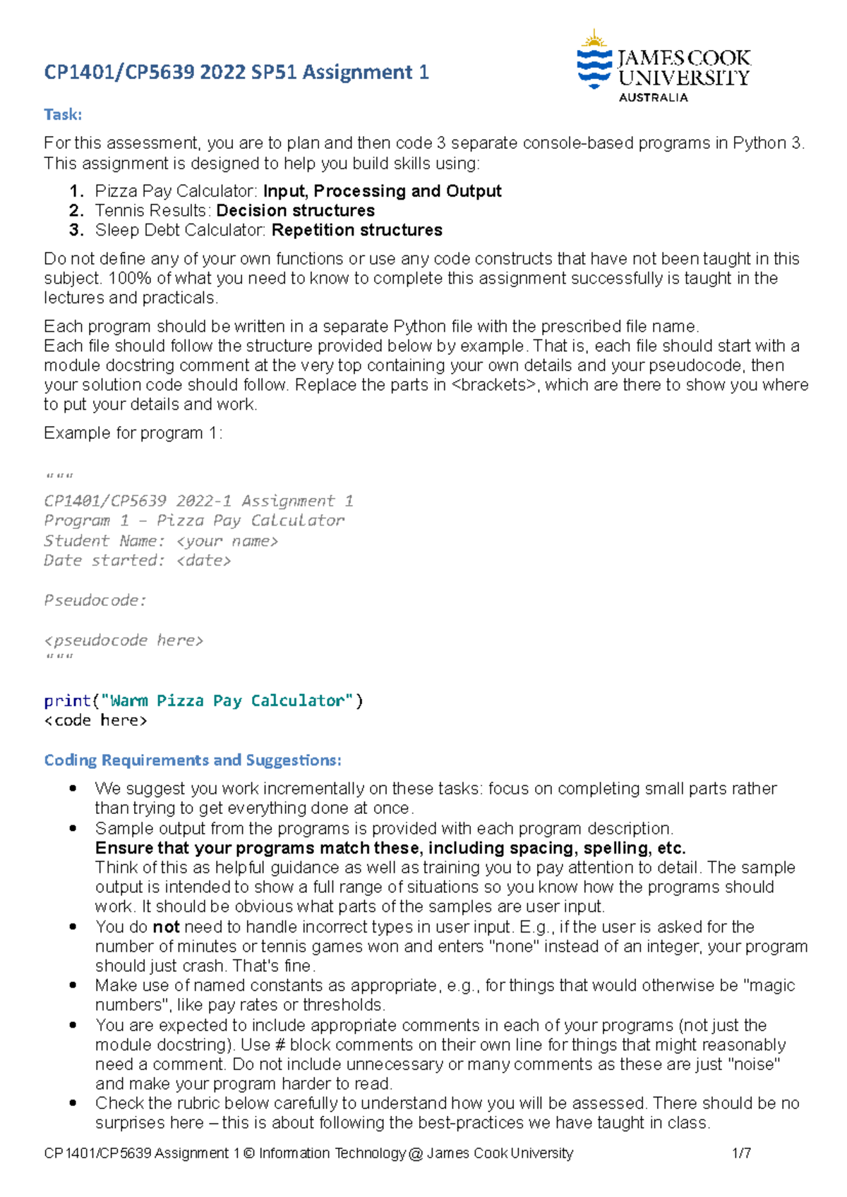CP1401CP5639 Assignment 1 SP51 2022 - BU1105 - Studocu