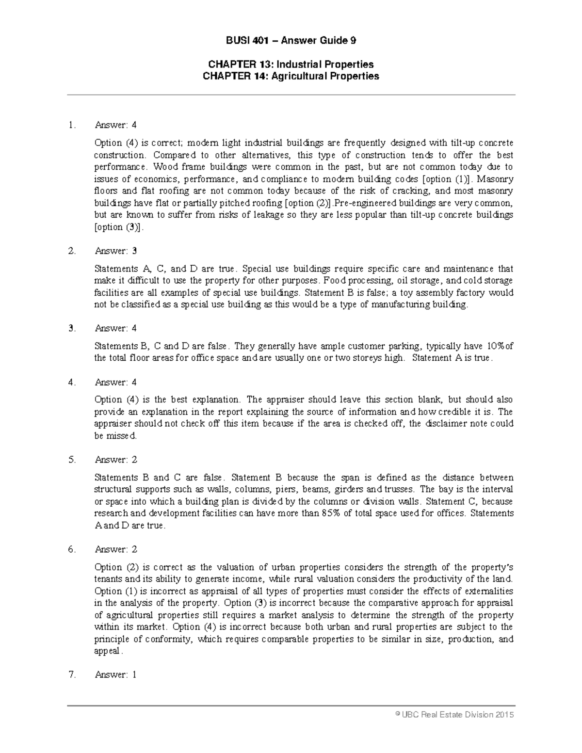 assignment 8 answer - BUSI 330 Answer Guide No. 8 The Cost Approach ...