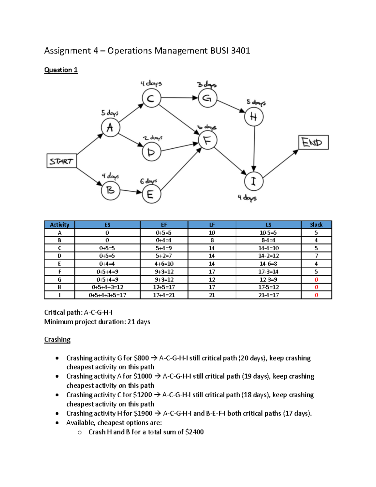 Assignment 4 - BUSI 3401 - Assignment 4 – Operations Management BUSI ...