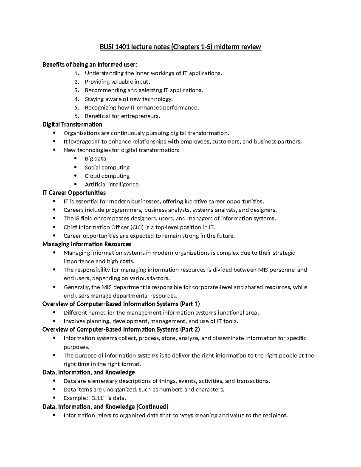 BUSI 1401 - Carleton - Info Systems - Studocu