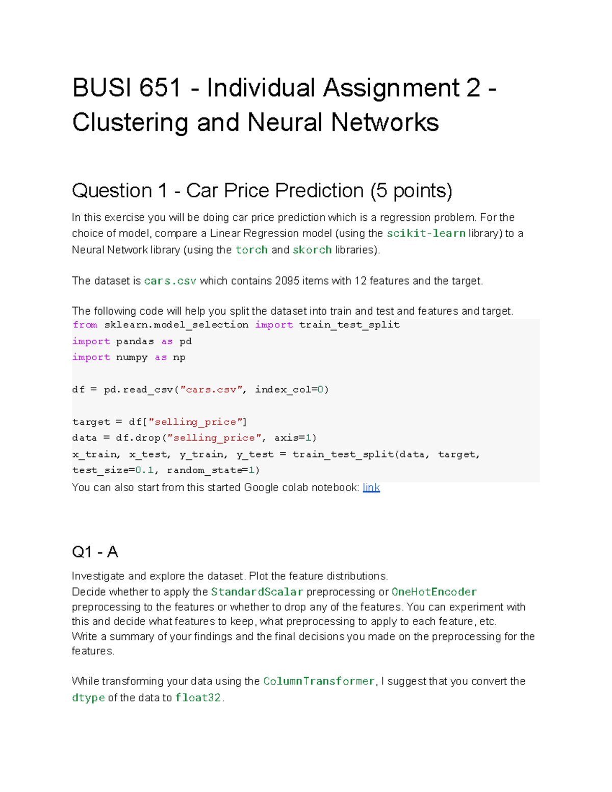 Assignment 2 BUSI 651 - BUSI 651 – Machine Learning Assignment 2: The ...