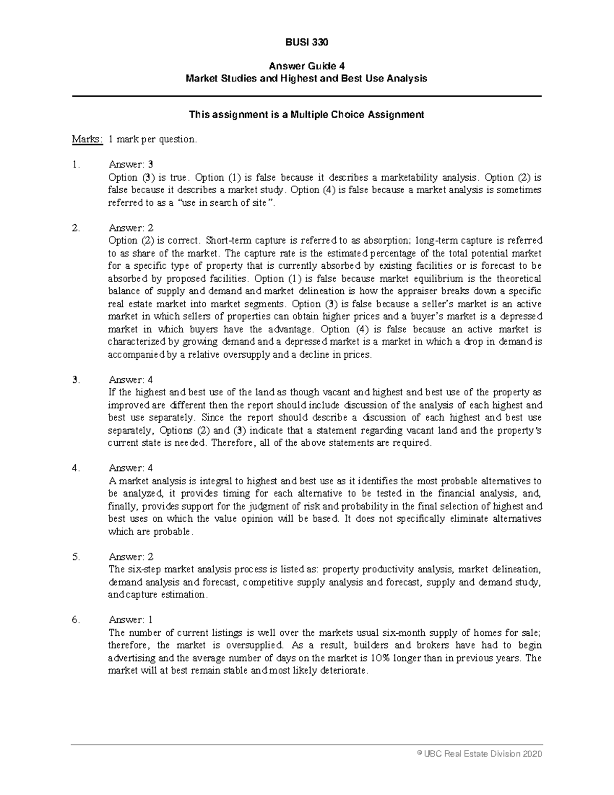 BUSI 330 - Assignment 4: Market Studies & Best Use Analysis Guide - Studocu