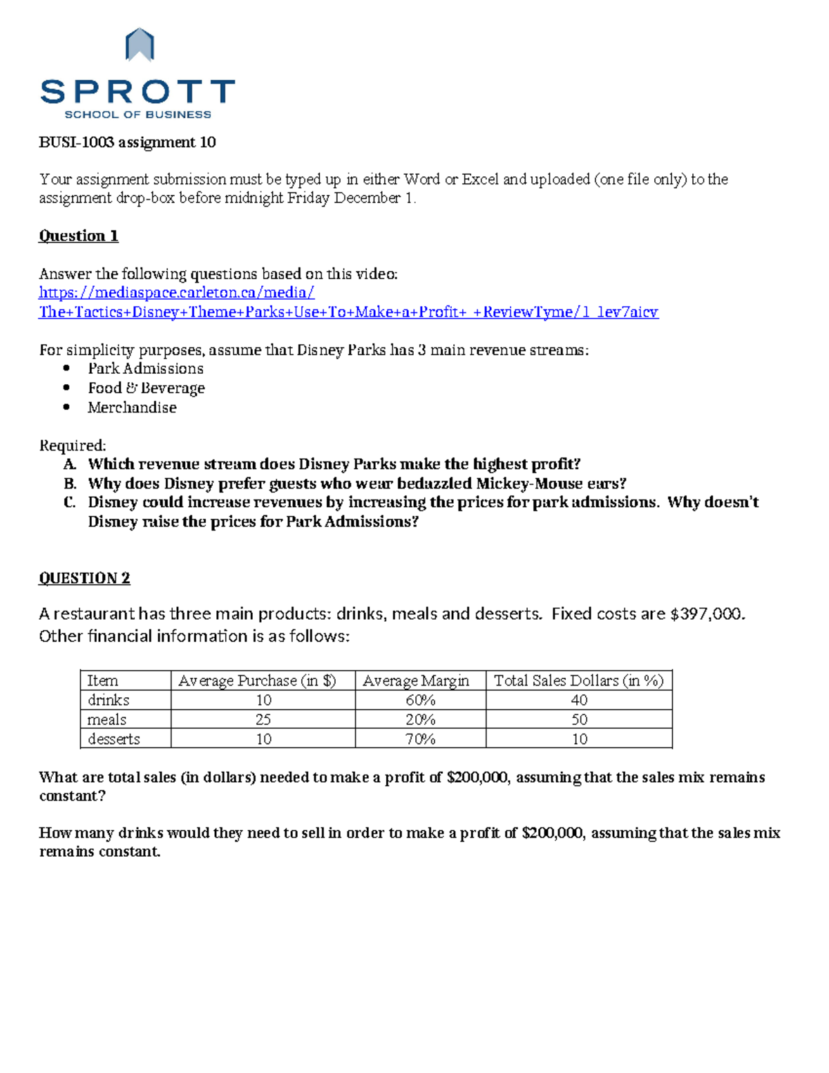 BUSI 1003 Assignment 10 Fall 2023 - BUSI-1003 assignment 10 Your ...