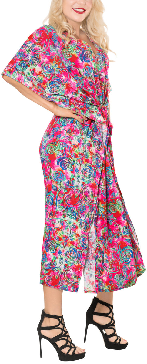 LA LEELA Soft Digital Swimwear Luau Boho Caftan Long Dress Pink 219 One ...