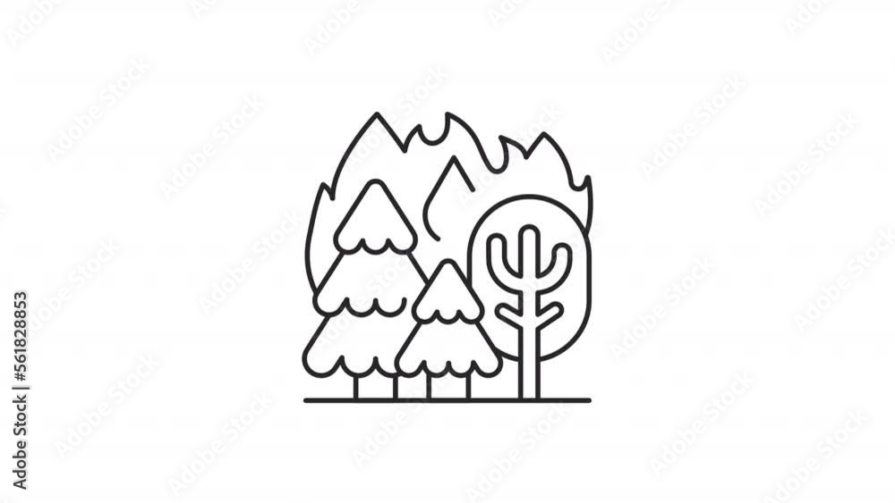 Animated wildfire linear icon. Natural disaster. Forest fire. Ecosystem ...