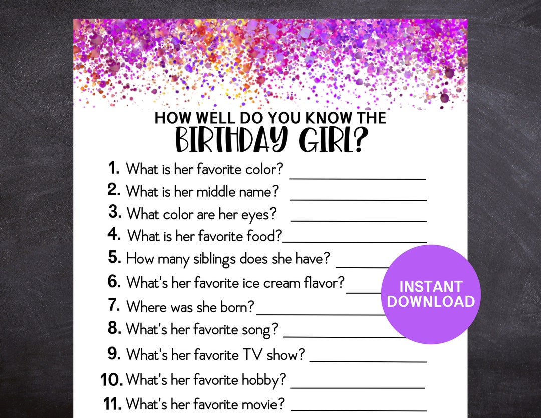 How Well Do You Know the Birthday Girl, Birthday Quiz, Girl Birthday ...