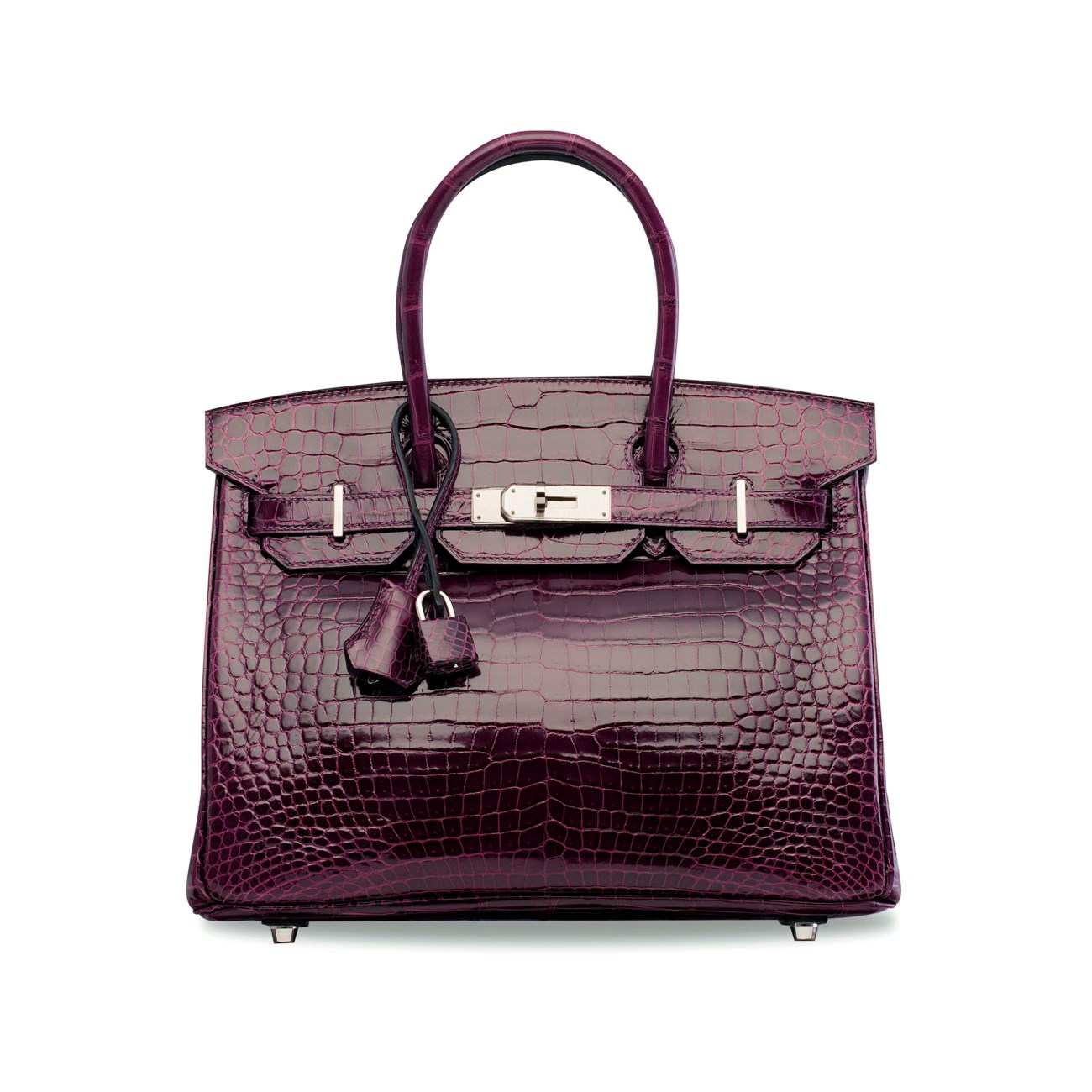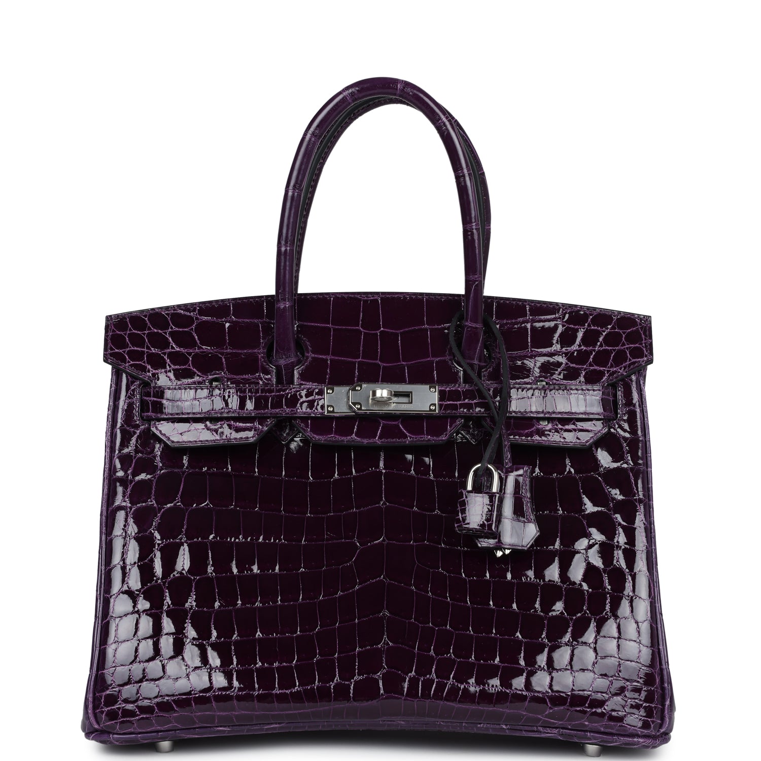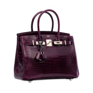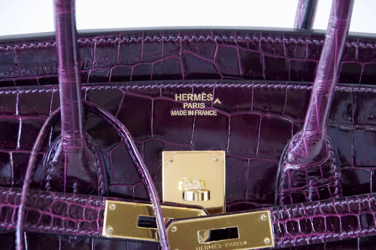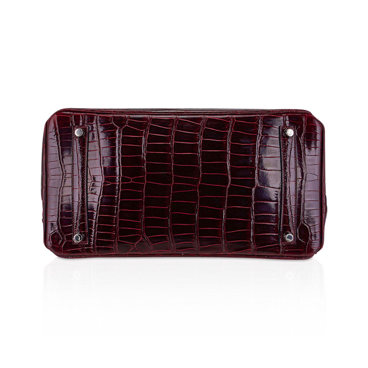 Based on this image's title: “Hermès Birkin 30 Crocodile Porosus Lisse Cassis Palladium Hardware For ...”