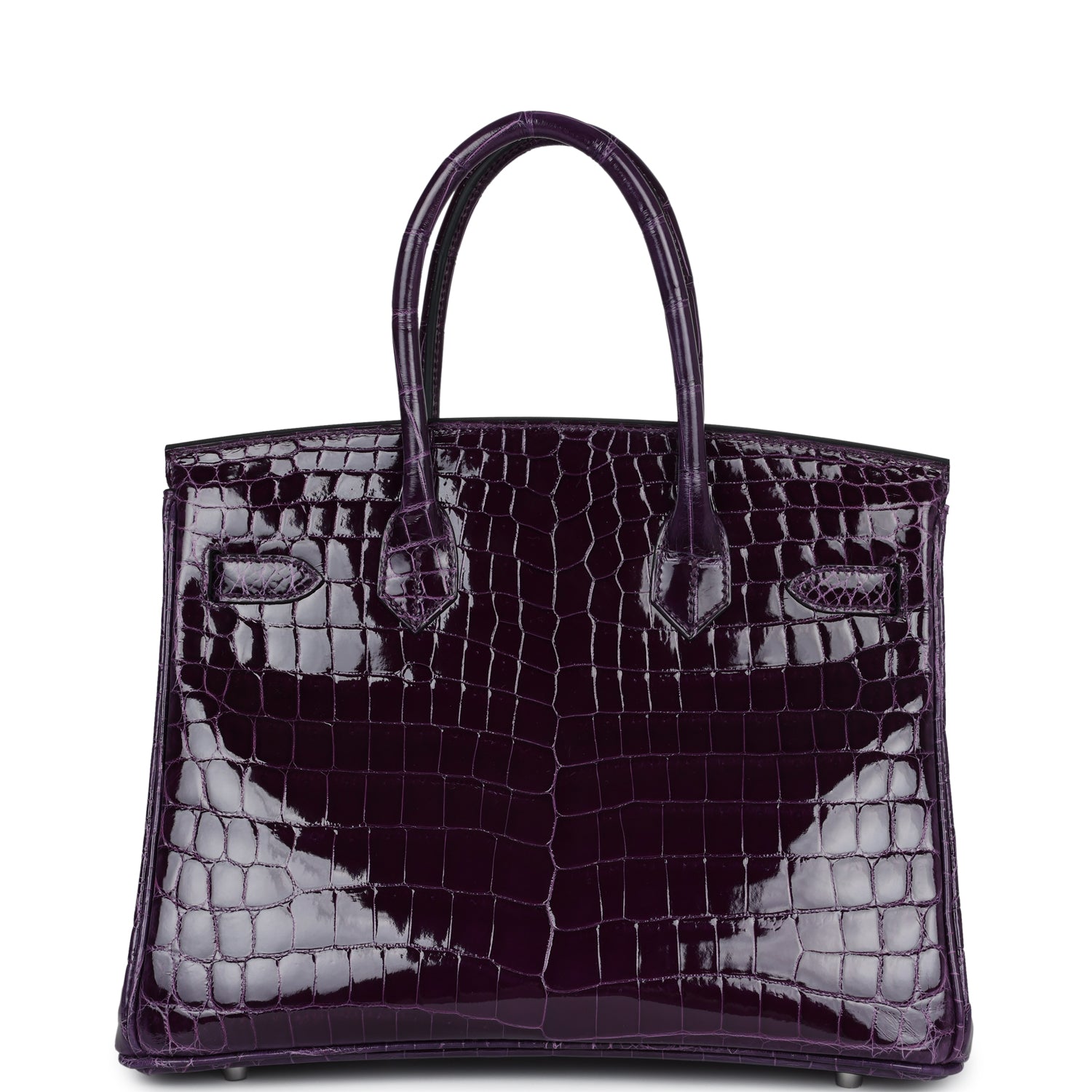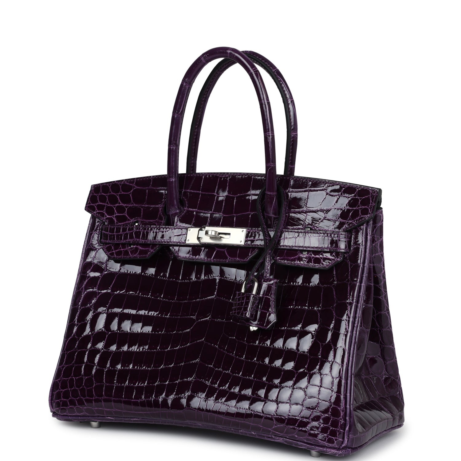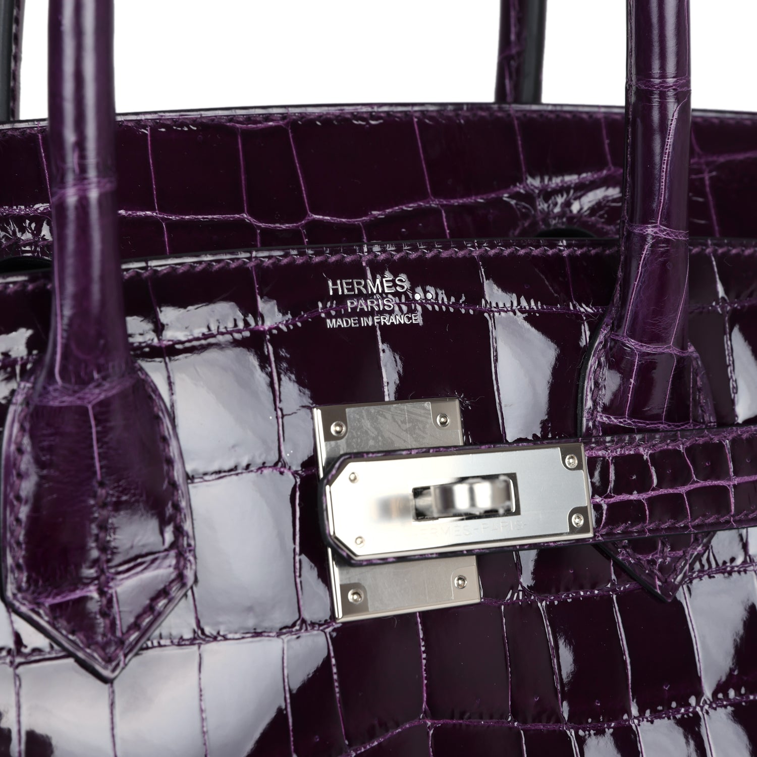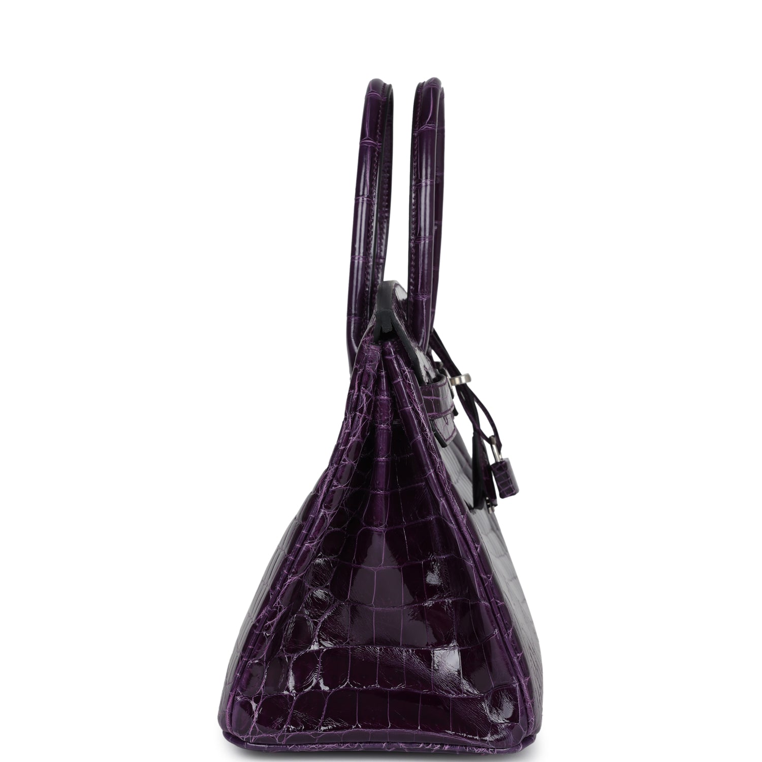 Based on this image's title: “Hermès Birkin 30 Crocodile Porosus Lisse Cassis Palladium Hardware For ...”