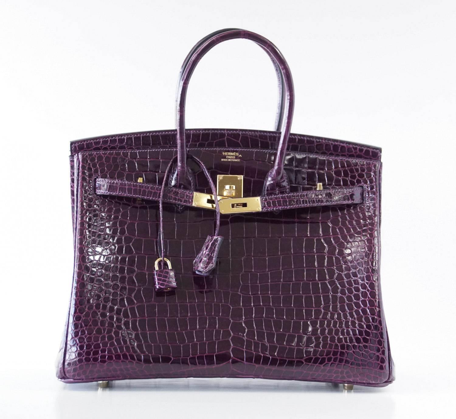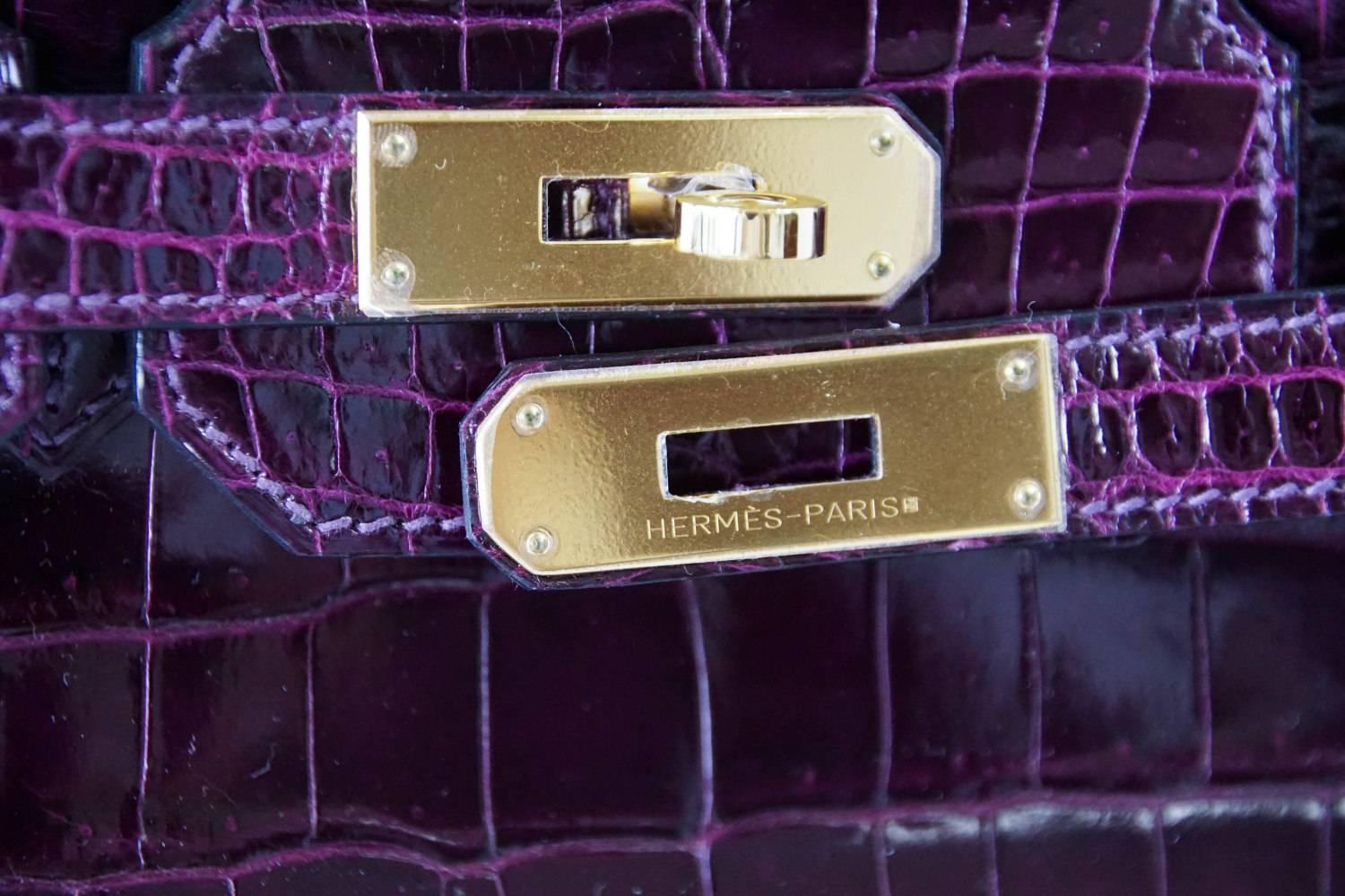 HERMES BIRKIN 35 Bag Very Rare Cassis Porosus Crocodile Gold Hardware ...