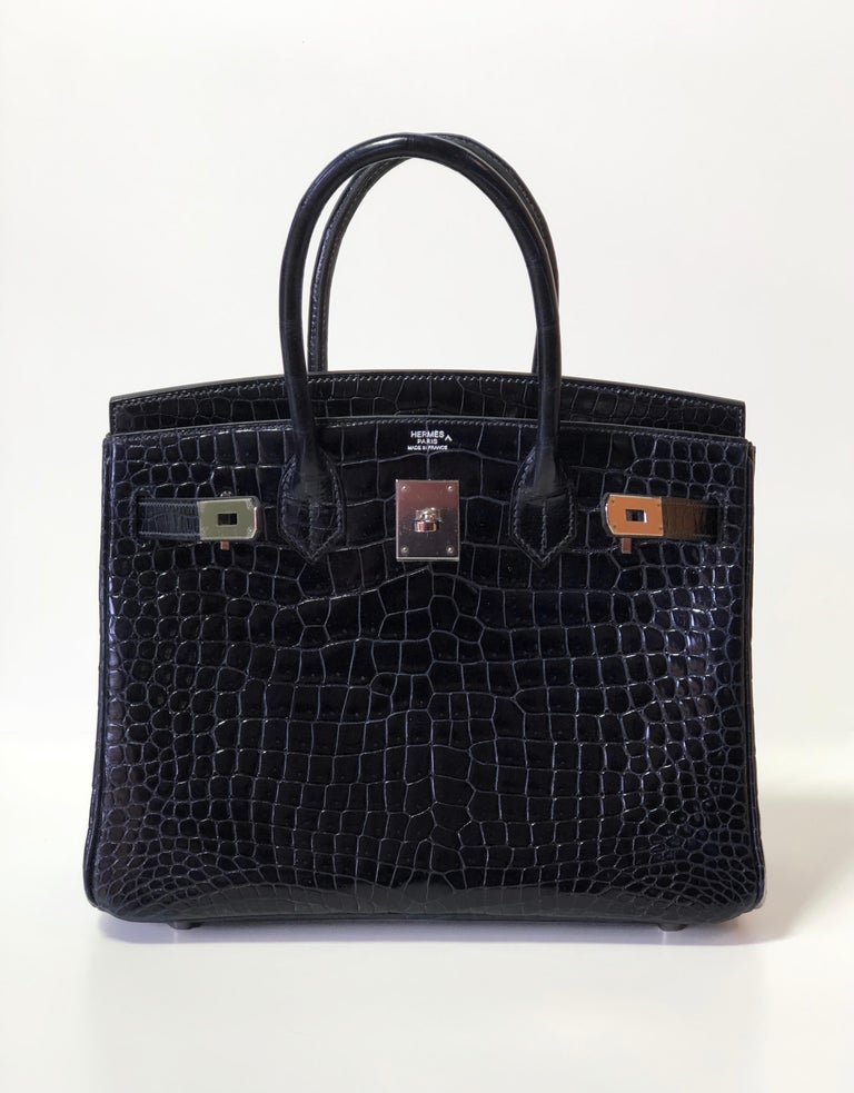 Hermès Black Shiny Porosus Crocodile Birkin 30 Palladium Hardware, 2017 ...