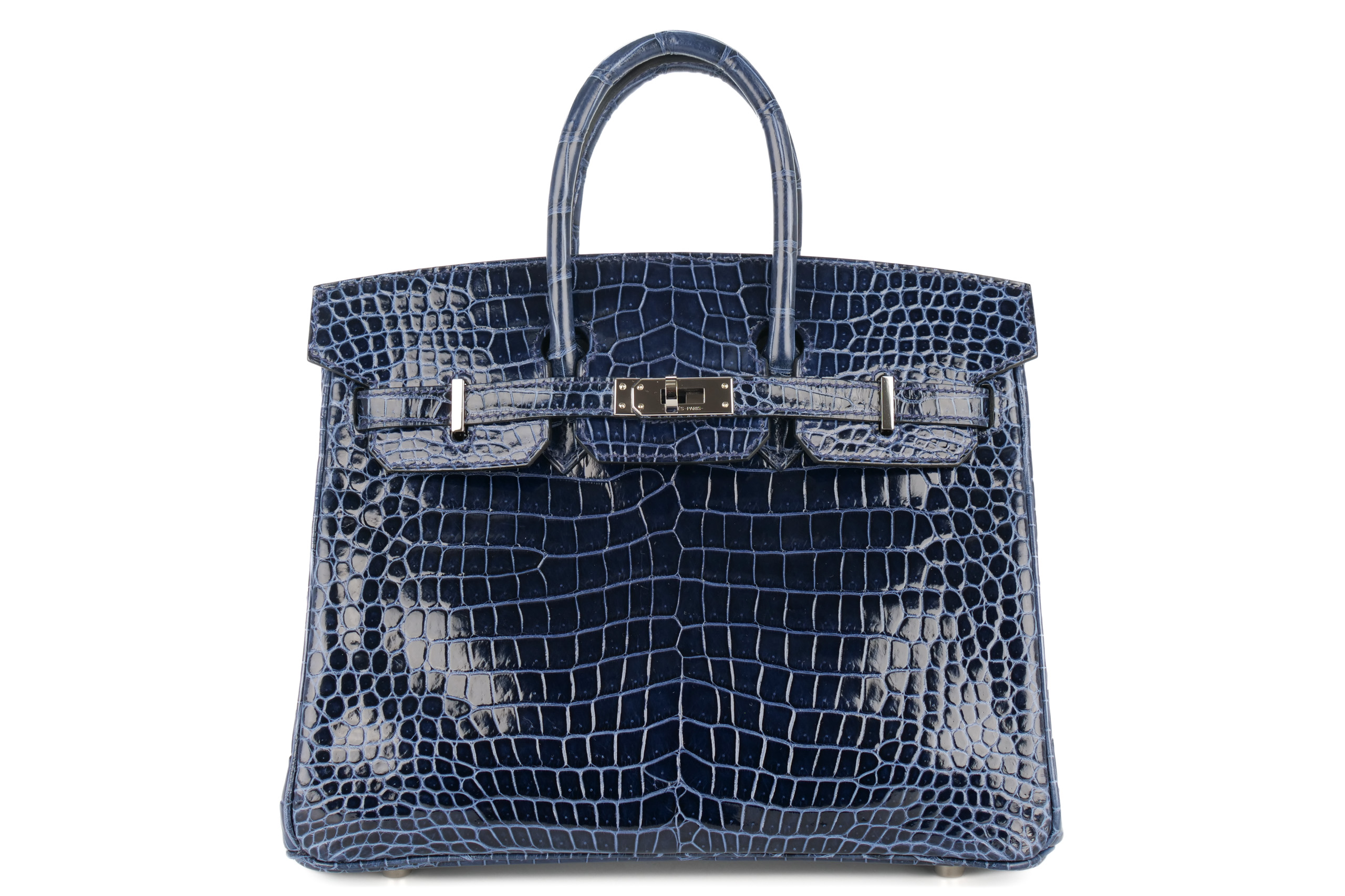 Hermès Birkin 25 Bleu Abysse Crocodile Porosus Lisse Palladium Hardware ...