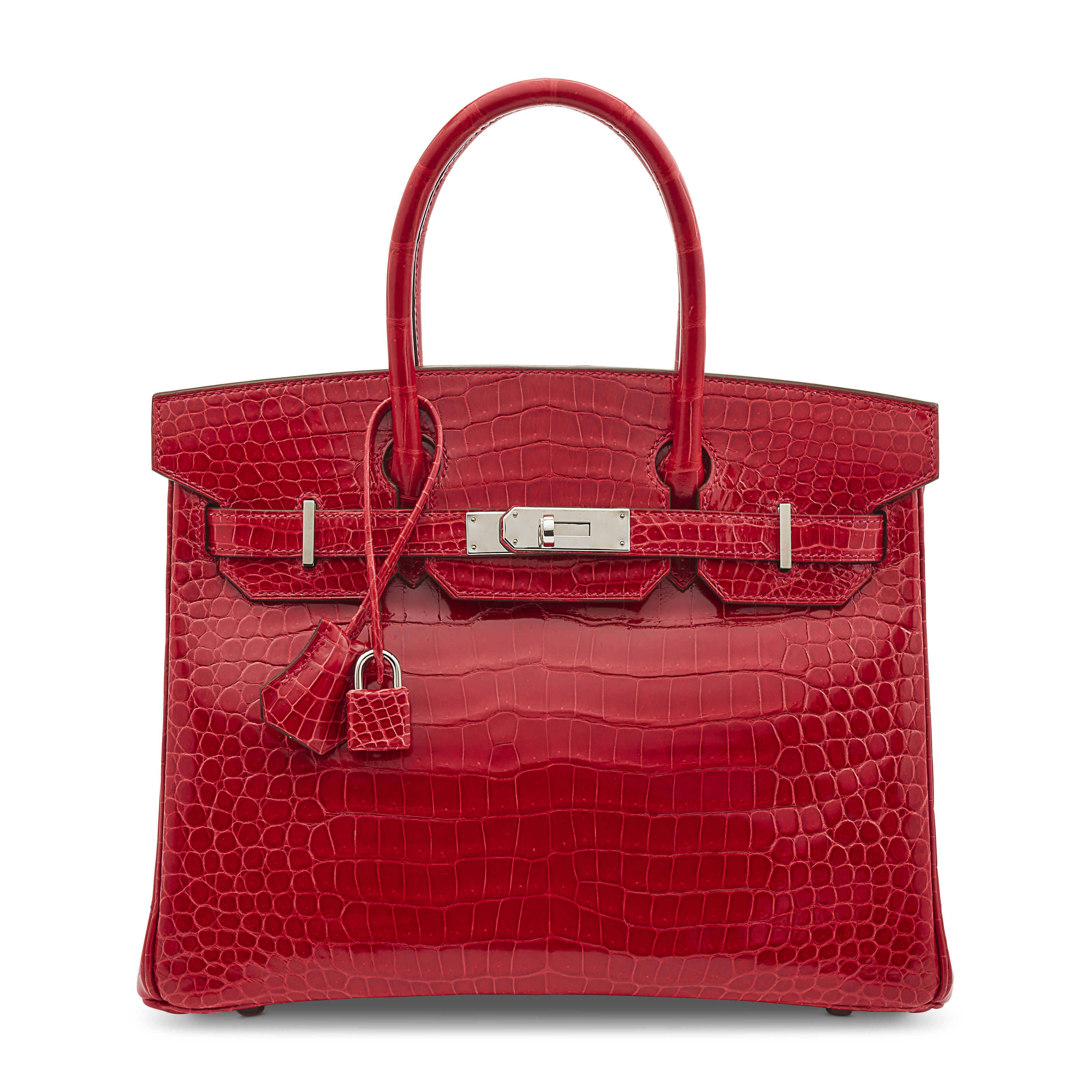 AN EXCEPTIONAL, SHINY ROUGE H POROSUS CROCODILE DIAMOND BIRKIN 30 WITH ...