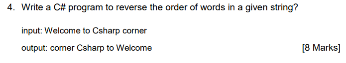 Solved 4. Write a C# program to reverse the order of words | Chegg.com