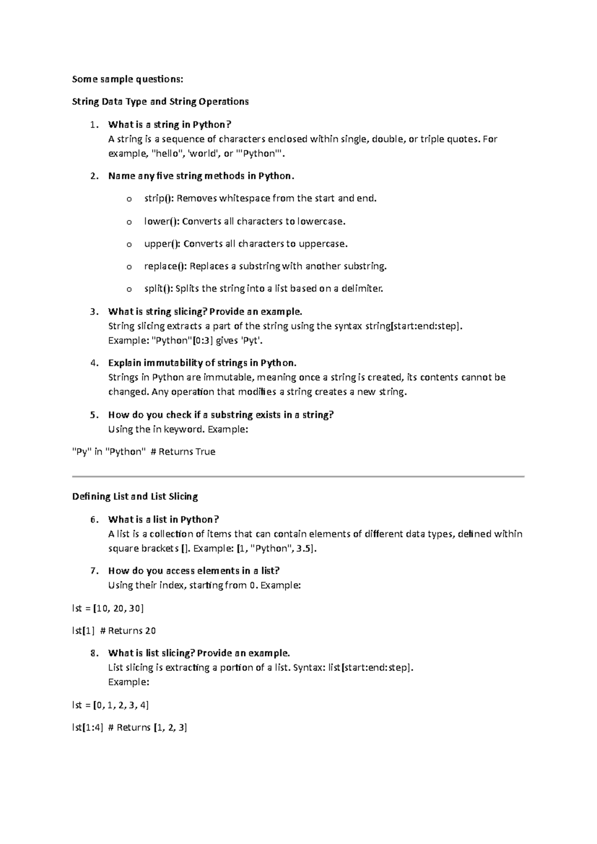 Python Programming - Sample Questions on Strings, Lists, & Tuples - Studocu