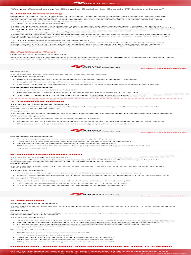 Aryu Academy's IT Interview Guide | PDF | Computer Programming | Cognition