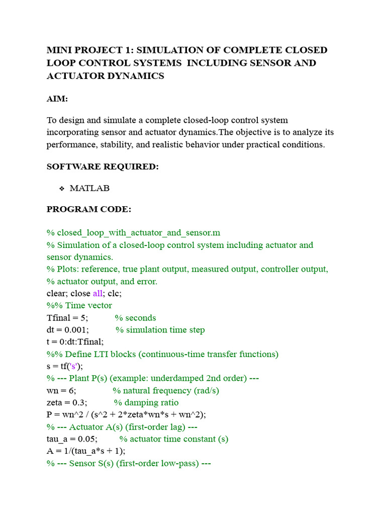 Mini Project 1 - Simulation of Complete Closed Loop Control Systems ...