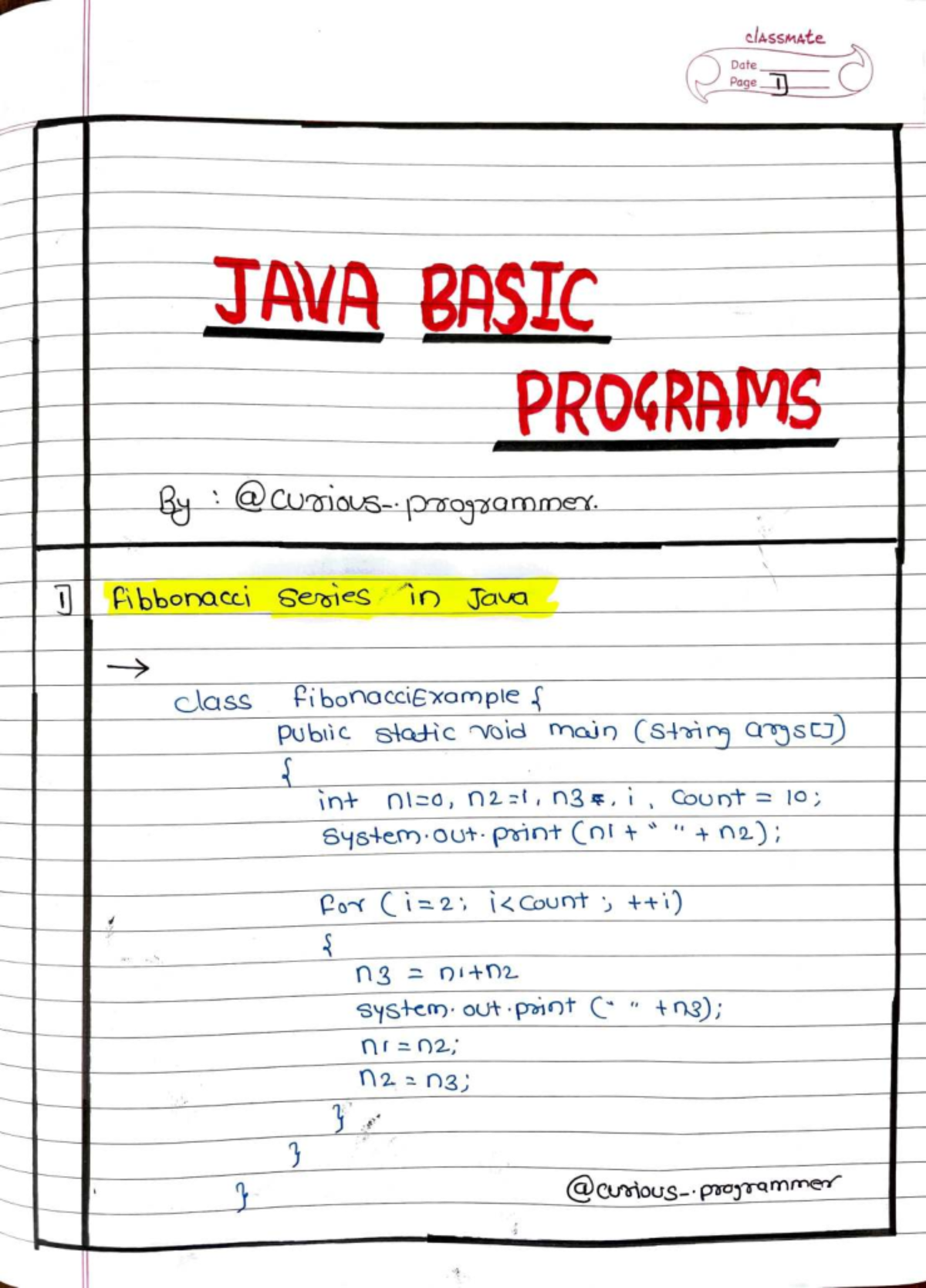 Java basic programs #java #notes #btech #bca #coding #programming # ...