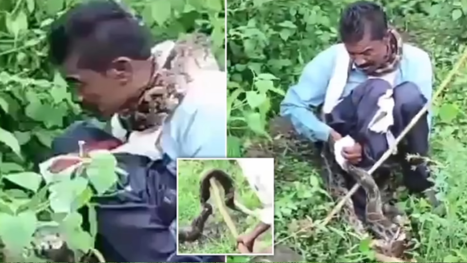 Watch this man get choked by a python in the forest