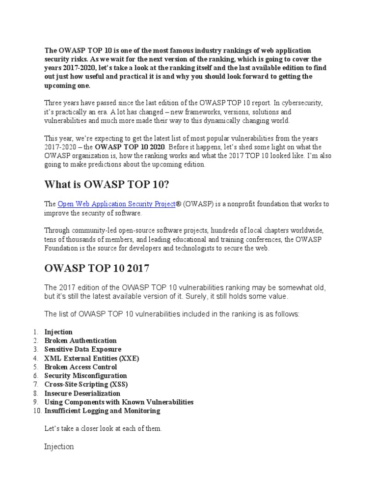 What Is OWASP TOP 10?: Open Web Application Security Project | PDF ...