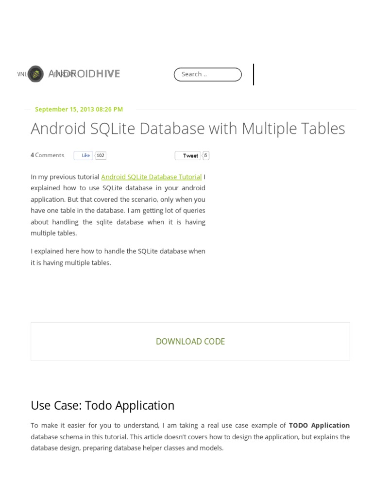 Android SQLite Database With Multiple Tables Example | PDF | Database ...