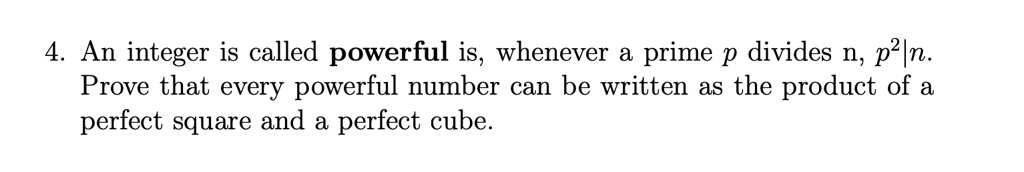 SOLVED: 4 An integer is called powerful is, whenever prime p divides n ...