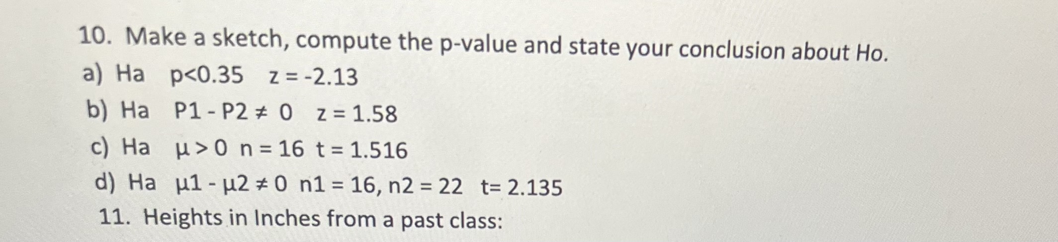 Solved 10. Make a sketch, compute the p-value and state your | Chegg.com