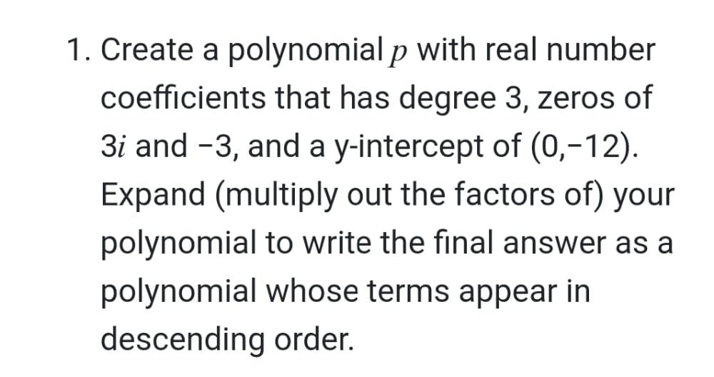 Solved Create a polynomial P with real number coefficients | Chegg.com