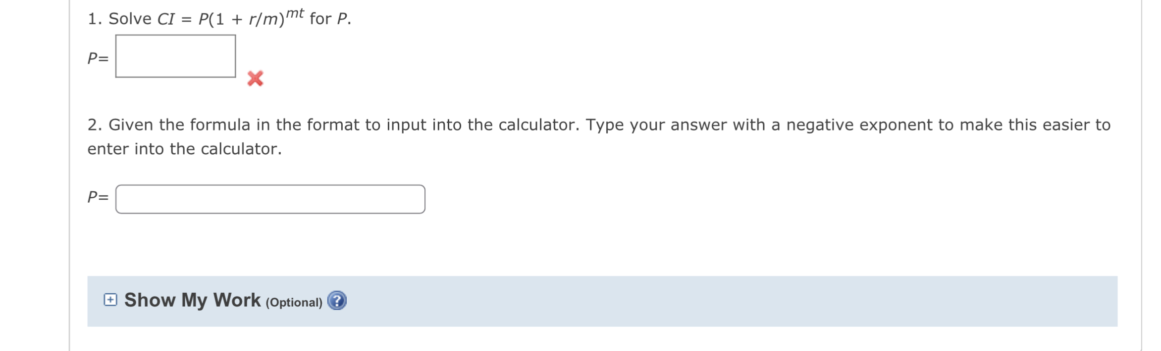 Solved 1. SolveCI = P(1 + r/m)mtfor P. P= 2. Given the | Chegg.com