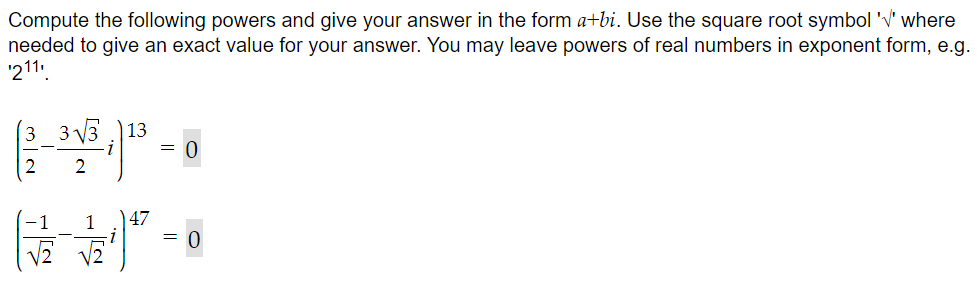 Solved Compute the following powers and give your answer in | Chegg.com