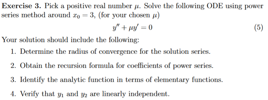 Solved - Exercise 3. Pick a positive real number u. Solve | Chegg.com