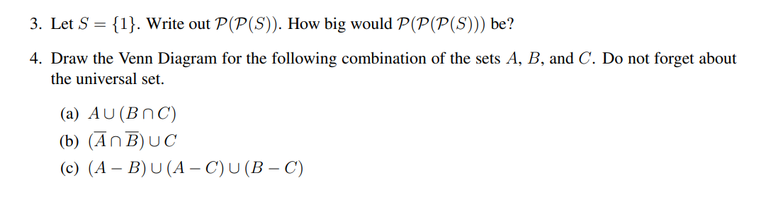 Solved 3. Let S={1}. Write out P(P(S)). How big would | Chegg.com