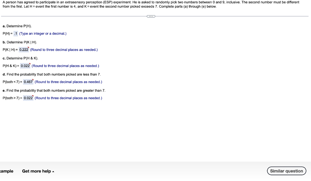 Solved a. Determine P(H). P(H)=.1 (Type an integer or a | Chegg.com