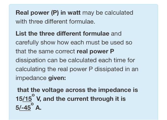 Solved Real power (P) in watt may be calculated with three | Chegg.com