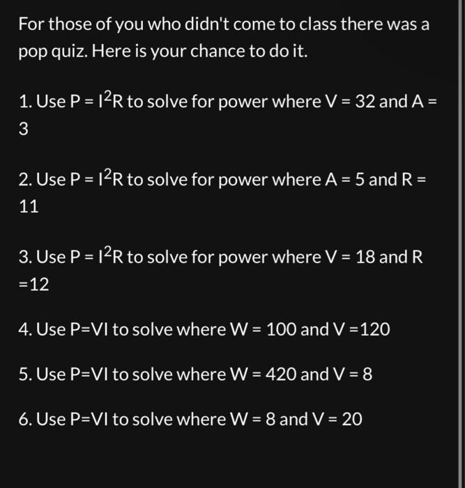 Solved Power (P =VI) (You must show all your work to receive | Chegg.com