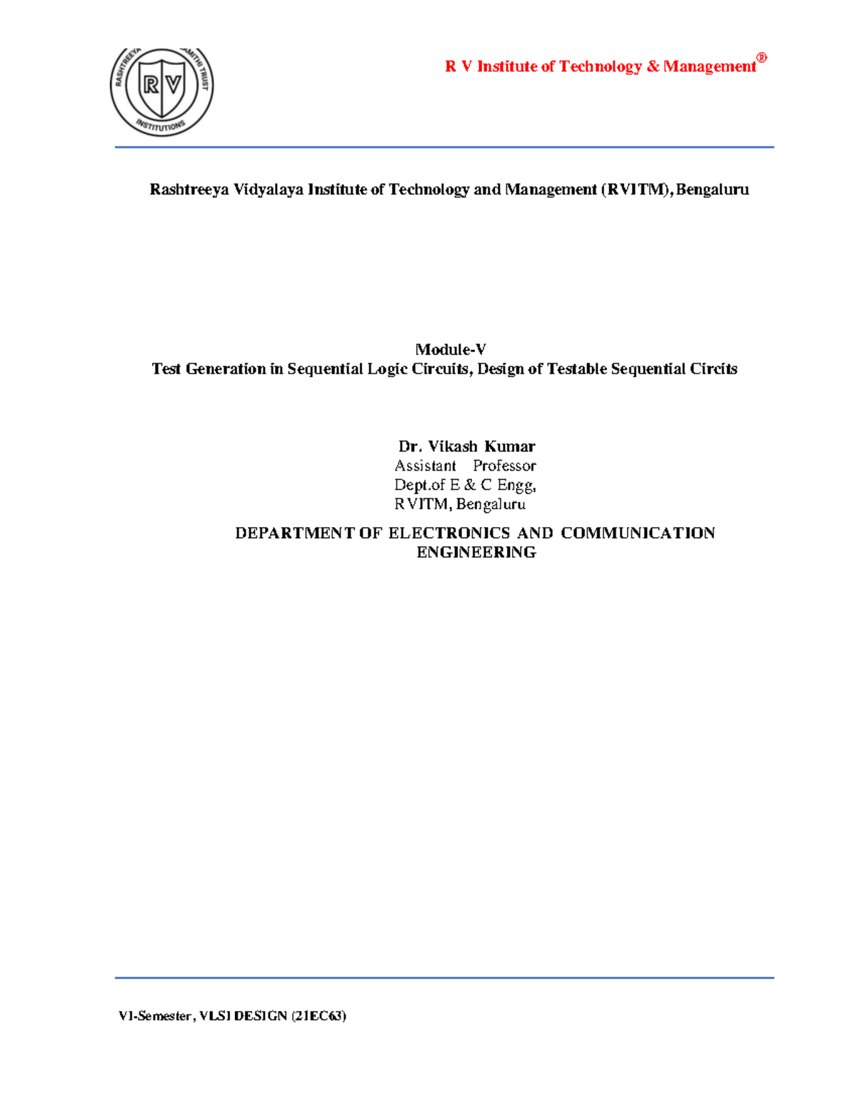 Module 5 Testing - lecture notes - VLSI Design - R V Institute of ...